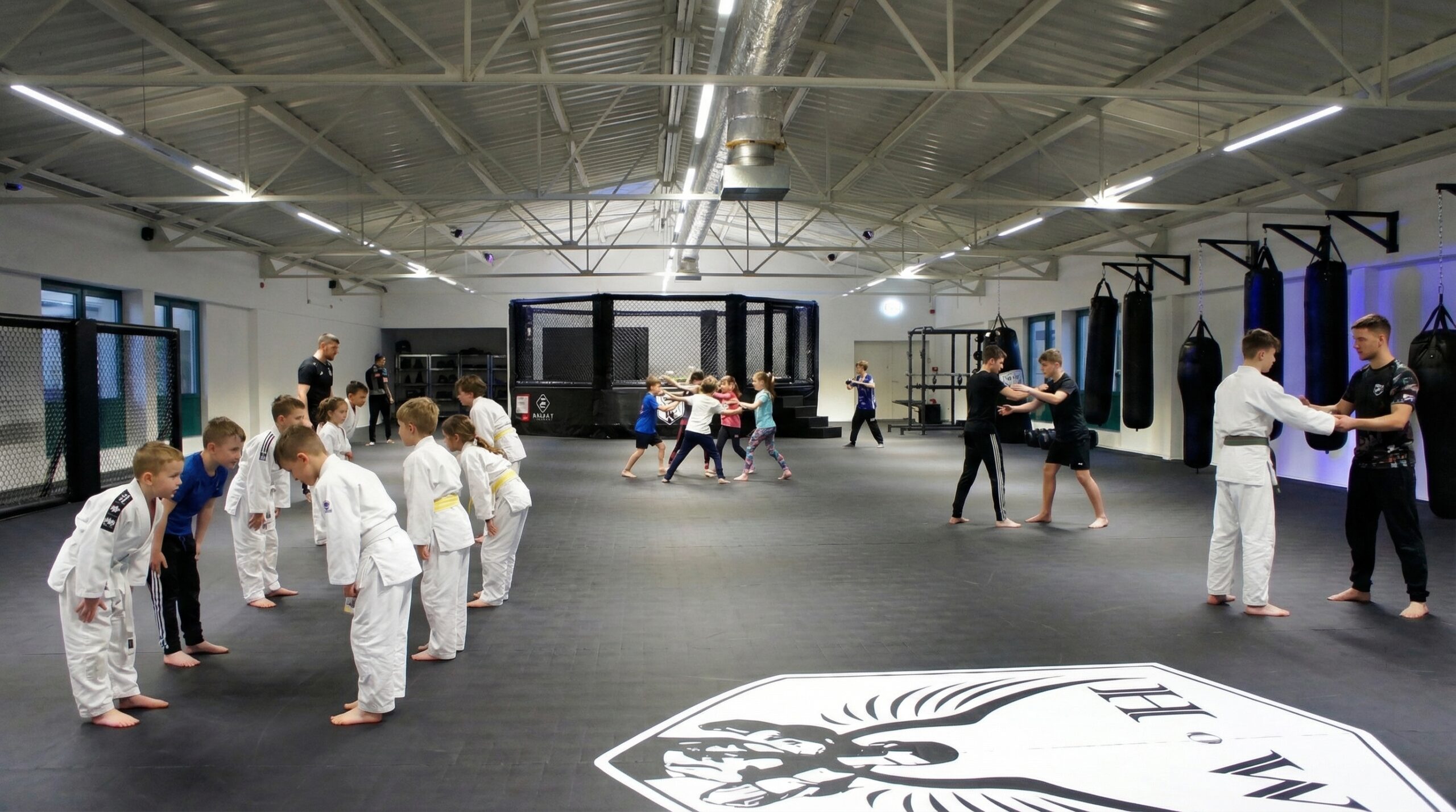 Großzügige Mattenbereiche, funktioneller Trainingsraum, saubere Umkleiden. Professionelle Bedingungen statt Improvisation.